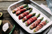 Gospodarstwo świeże szparagi zawijane w boczek lub pancetta i pieczone