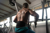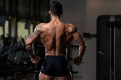Fizycznie Man pokazano jego dobrze przeszkolony z powrotem
