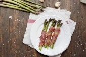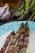Grillowane szparagi zawijane w pancetta lub boczek, włoskiej kuchni