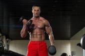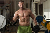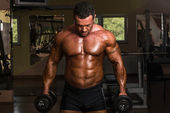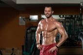 Muskularny mężczyzna z ręcznikiem na ramionach