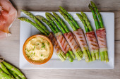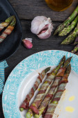 Świeże szparagi zawijane w boczek chrupiąca lub pancetta