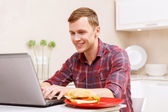Zdjęcie "Mężczyzna jedzenie kanapka przed komputerem" może być wykorzystywane do celów osobistych i komercyjnych zgodnie z warunkami zakupionej licencji Royalty-free. Obraz jest dostępny do pobrania w jakości wysokiej rozdzielczości do 5760x3840.
