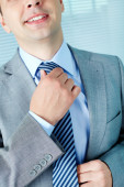 Uśmiechnięty mężczyzna ustalania jego krawat
