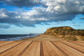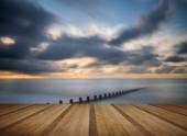 Stonowanych ładnym krajobrazem skalisty brzeg na zachód słońca