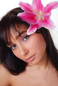 piękna młoda kobieta z kwiatem lilii