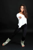moda piękny portret pięknej młodej kobiety w leopard buty