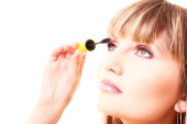 piękna młoda kobieta twarzy z zastosowaniem naturalnego piękna makijaż.
