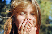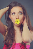 piękna kobieta z słonecznika w jej włosy nad białym