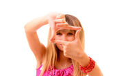 piękny szczęśliwy młoda kobieta z okulary nad białym