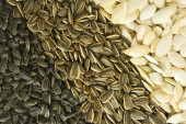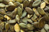 Nieobrane i obrane nasiona dyni z bliska, widok z góry