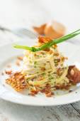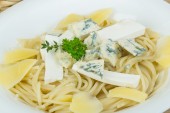 Zdjęcie "Makaron z serem gorgonzola na tle drewniane" może być wykorzystywane do celów osobistych i komercyjnych zgodnie z warunkami zakupionej licencji Royalty-free. Obraz jest dostępny do pobrania w jakości wysokiej rozdzielczości do 5760x3840.