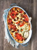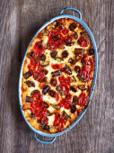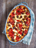 włoski Rustic pieczone warzywnym ragout z polenta, szpinak