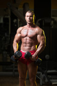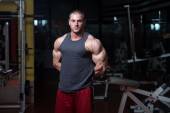 Estetyczne człowiek słuchanie muzyki w nowoczesnym centrum Fitness