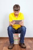 Zdjęcie "Student z książek i tabletki" może być wykorzystywane do celów osobistych i komercyjnych zgodnie z warunkami zakupionej licencji Royalty-free. Obraz jest dostępny do pobrania w jakości wysokiej rozdzielczości do 5760x3840.