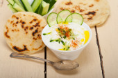 Zdjęcie "Arabskich Bliskiego Wschodu koziego jogurt i mizerią " może być wykorzystywane do celów osobistych i komercyjnych zgodnie z warunkami zakupionej licencji Royalty-free. Obraz jest dostępny do pobrania w jakości wysokiej rozdzielczości do 5760x3840.