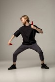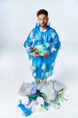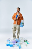 Zdjęcie "Mężczyzna stoi w białym studiu, otoczony skórkami od banana, trzymając miotłę i patelnię.." może być wykorzystywane do celów osobistych i komercyjnych zgodnie z warunkami zakupionej licencji Royalty-free. Obraz jest dostępny do pobrania w jakości wysokiej rozdzielczości do 5760x3840.