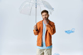 Zdjęcie "Mężczyzna w płaszczu przeciwdeszczowym trzyma parasol i pozuje na trawiastym wzgórzu.." może być wykorzystywane do celów osobistych i komercyjnych zgodnie z warunkami zakupionej licencji Royalty-free. Obraz jest dostępny do pobrania w jakości wysokiej rozdzielczości do 5760x3840.