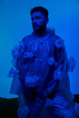 Zdjęcie "Człowiek leży na zielonym skrawku, otoczony plastikowymi odpadami.." może być wykorzystywane do celów osobistych i komercyjnych zgodnie z warunkami zakupionej licencji Royalty-free. Obraz jest dostępny do pobrania w jakości wysokiej rozdzielczości do 5760x3840.