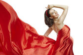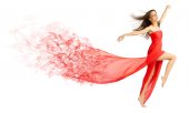 Kobieta w skok, skok wykonawca dziewczyna taniec w czerwonej sukience