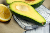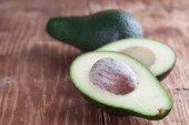 Pokrojone awokado na drewnianym tle