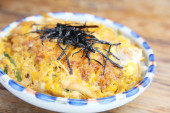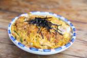 Katsudon głębokie kotlet smażony z jajkiem na ryżu