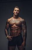 Zdjęcie "Muskularny mężczyzna pozowanie Studio" może być wykorzystywane do celów osobistych i komercyjnych zgodnie z warunkami zakupionej licencji Royalty-free. Obraz jest dostępny do pobrania w jakości wysokiej rozdzielczości do 5760x3840.