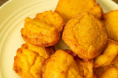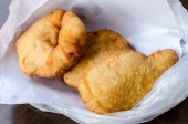 porcja tuńczyka wypieków (empanadas), na drewnianym stołem