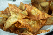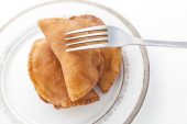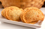 porcja tuńczyka wypieków (empanadas), na drewnianym stołem