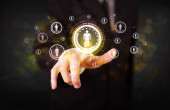 Zdjęcie "nowoczesne biznesmen dotykając sieć społecznych technologia przyszłości, ale" może być wykorzystywane do celów osobistych i komercyjnych zgodnie z warunkami zakupionej licencji Royalty-free. Obraz jest dostępny do pobrania w jakości wysokiej rozdzielczości do 5760x3840.