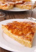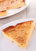 Część tortilla (hiszpański omlet) na drewnianym stołem