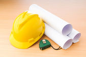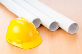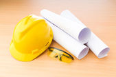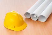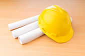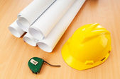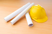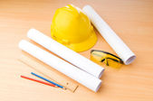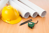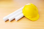 rysunki i twardy kapelusz na biurku