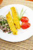 tradycyjne azerski szaszłyk z puree ziemniaczanym