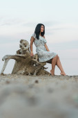 uśmiechający się młoda kobieta sobie Słomkowy kapelusz i zabawy w być