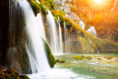 wodospad w głębokim lesie