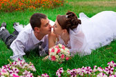 Zdjęcie "portret szczęśliwy nowożeńcy na trawie w parku" może być wykorzystywane do celów osobistych i komercyjnych zgodnie z warunkami zakupionej licencji Royalty-free. Obraz jest dostępny do pobrania w jakości wysokiej rozdzielczości do 5760x3840.