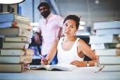 Zdjęcie "kobiet student siedząc z książek" może być wykorzystywane do celów osobistych i komercyjnych zgodnie z warunkami zakupionej licencji Royalty-free. Obraz jest dostępny do pobrania w jakości wysokiej rozdzielczości do 5760x3840.