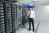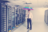 młody engeneer w serwerowni datacenter