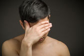 Modelu ukrywanie twarzy z powodu wstydu