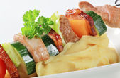 Zdjęcie "Szaszłyk wieprzowy z puree ziemniaczanym " może być wykorzystywane do celów osobistych i komercyjnych zgodnie z warunkami zakupionej licencji Royalty-free. Obraz jest dostępny do pobrania w jakości wysokiej rozdzielczości do 5760x3840.