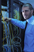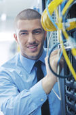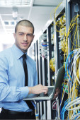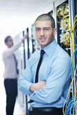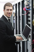 biznesmen z laptopa w sieci serwerownia