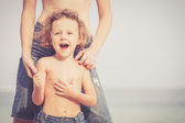 Tata i córka bawiące się w pobliżu domu w czasie dnia