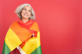 Zdjęcie "Nauczyciel chodzi po kampusie trzymając tęczową flagę.." może być wykorzystywane do celów osobistych i komercyjnych zgodnie z warunkami zakupionej licencji Royalty-free. Obraz jest dostępny do pobrania w jakości wysokiej rozdzielczości do 5760x3840.