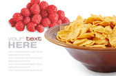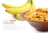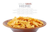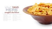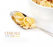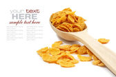 płatki kukurydziane i drewnianą łyżką na białym tle