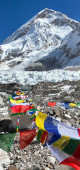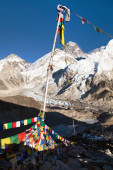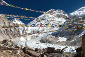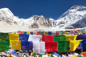 widok na mount everest z buddyjskim modlitwy flagi