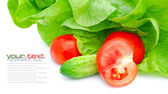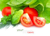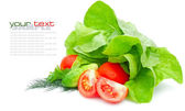 świeże pomidory i zieleni na Zielona sałatka na białym tle