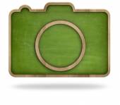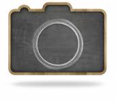 Puste aparat czarny kształt tablica z drewnianą ramą