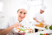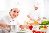 młody atrakcyjny profesjonalny szef kuchni w swojej kuchni