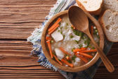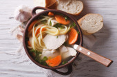 Rosół z makaronem. pionowe góry powyżej, rustykalne