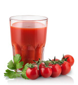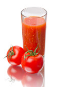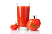 szklanka soku świeżych pomidorów na białym tle