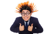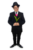 Młody człowiek w czarny strój z kwiat na białym tle